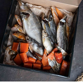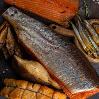 Ассортимент магазина включает в себя: более 30 разновидностей копченой рыбы, 7 разновидностей вяленой рыбы, 5 разновидностей слабосоленой рыбы, около 50 разновидностей свежемороженой рыбы, 15 разновидностей креветок и лангустинов, крабы, филе гребешка, живые морепродукты (крабы, устрицы, моллюски), 4 разновидности красной икры, 7 разновидностей черной икры, огромной